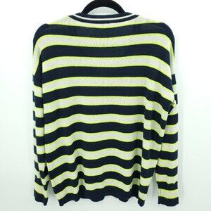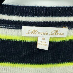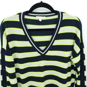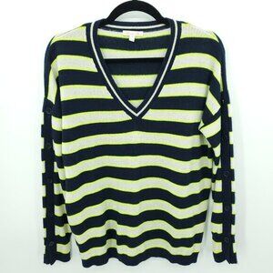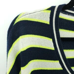 Minnie Rose 100% Cashmere Striped Relaxed Fit V-Neck Sweater M Blue/White/Yellow