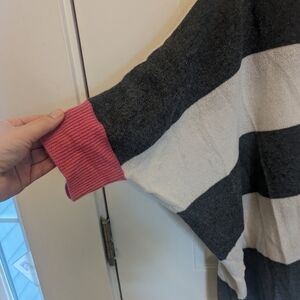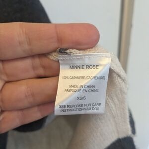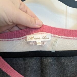 Minnie Rose 100% Cashmere Striped Short Sleeve Sweater. Cream and gray striped with pink accents. Oversized fit. Great condition.