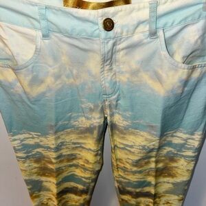 Minnie Rose Blue And Yelllow Sky Sunset Stretch Pants Size 2