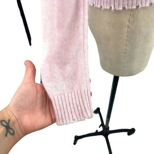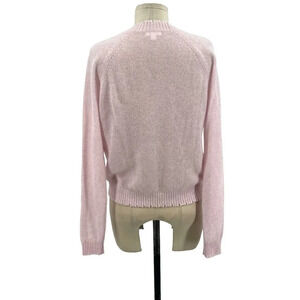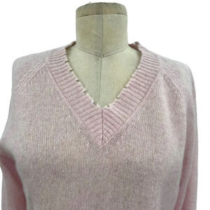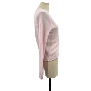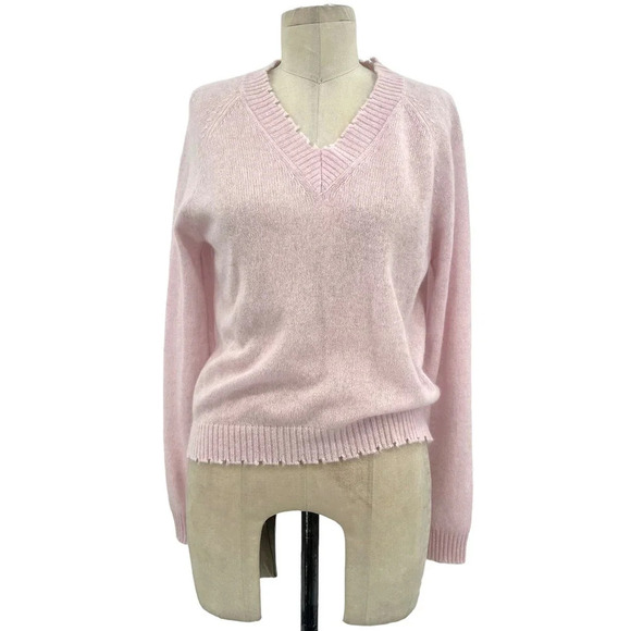 Minnie Rose Cashmere Frayed Edge Cropped V-Neck Sweater Pink Size Small