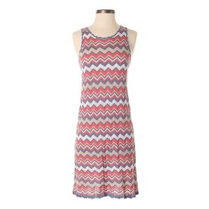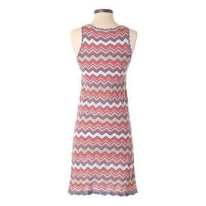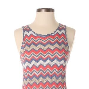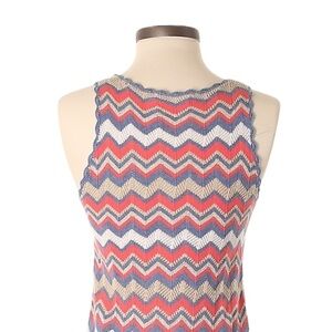 Minnie Rose Chevron Knit Mini Dress XS Boho Sleeveless Scalloped Hem Cotton