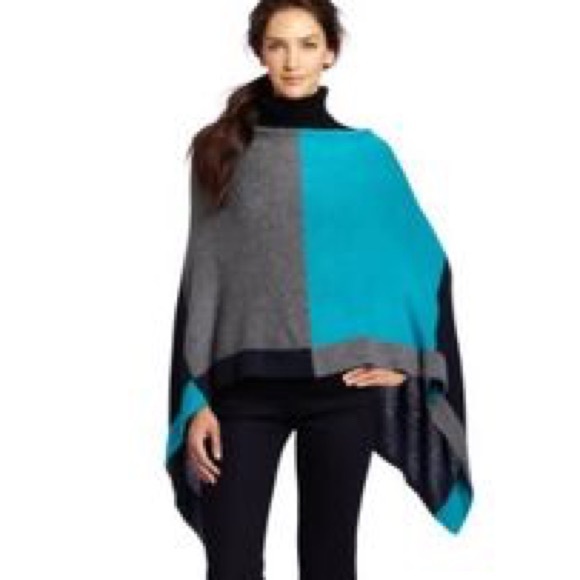 Poncho style 100% Cashmere in color turquoise, gray, and navy
