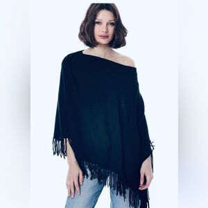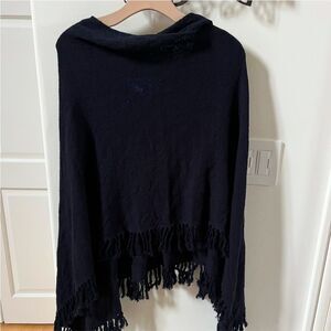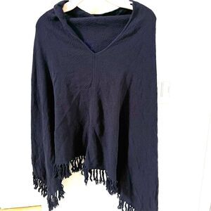 Minnie Rose Cotton Fringe Poncho Shawl in Navy