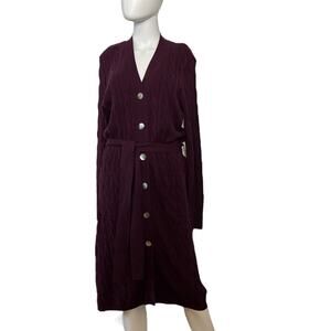 Minnie Rose Dark Purple Loganberry Cableknit Belted Duster XL NWT $275