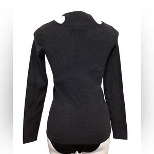 Minnie Rose Heather Gray Cold Shoulder Top Crew Neck Sweater New Size Small