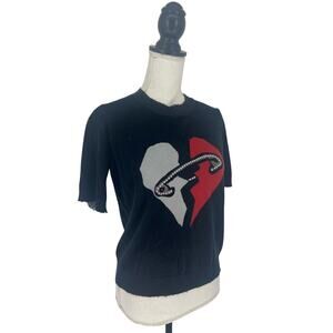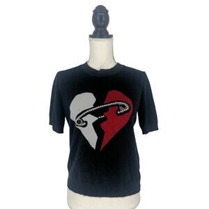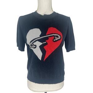 Add playful charm to your wardrobe with this Minnie Rose short sleeve sweater featuring an oversized heart graphic across the front. Crafted from a luxe cotton-cashmere blend, this lightweight knit offers a soft, breathable feel with just the right amount of warmth for transitional seasons. The pullover silhouette is relaxed yet feminine with a flattering crew neckline, ribbed trim, distressed edges and subtly fitted shape. A perfect pairing with jeans, skirts, or layered under jackets for a sweet, laid-back look.