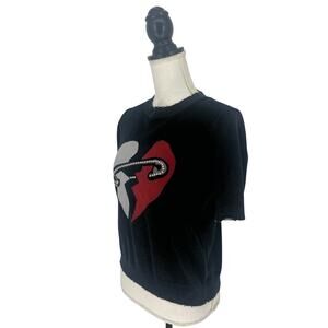 Minnie Rose Pink Heart Graphic Short Sleeve Cotton Cashmere Sweater.
