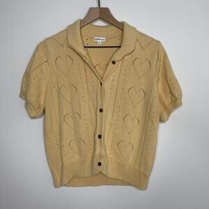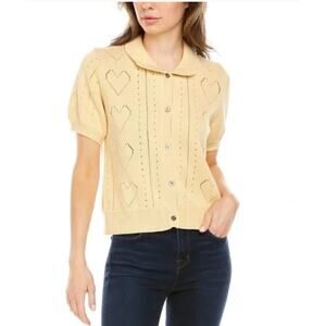 Minnie Rose Short Sleeve Pointelle Cardigan Medium Cotton Cashmere