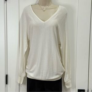 Minnie Rose Silk Sweater V Neck Coastal Bloused Chic Quiet Luxury White Size XS