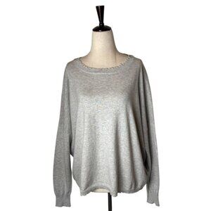 Minnie Rose Sweater Women Medium Gray Cotton Cashmere Knit Frayed Edges Luxury