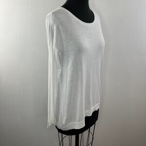 Minnie Rose White XS Top Round Neck Restore Asymmetrical Long Sleeve Pullover.