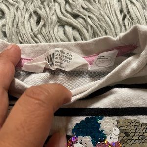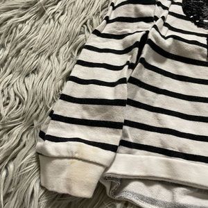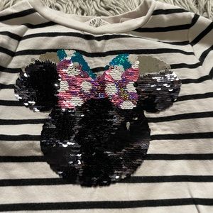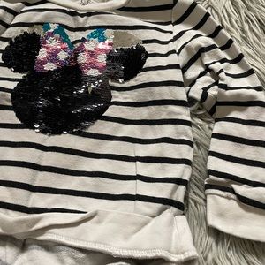 Black and white sweater, printed sequence Minnie Mouse with a bow . Size is 4-6 ,May have stains/spots