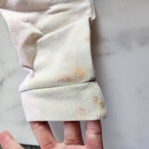 No rips but Has watercolor stains and heavy on the sleeves