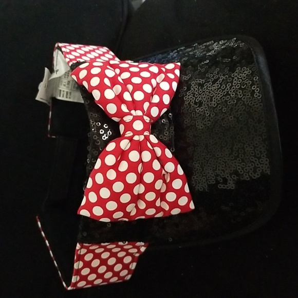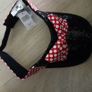 NWT, black sequin visor with red and white polka dot band adult size