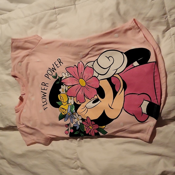 nwt adorable pink Minnie tee. tunic length. sparkle embellishment. keyhole back at top.