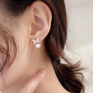 Minnie Mouse Pearl Earrings S925 Silver Post nwt