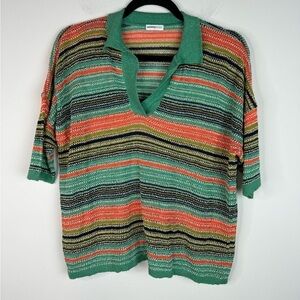 Minnie rose Baja Silk Blend Polo Shirt Split Neck Medium