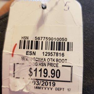 New with tags, Minnetonka over-the-knee boots. Ideal for size 5 small feet, these boots boast a stylish fringe design in a chic charcoal gray leather.