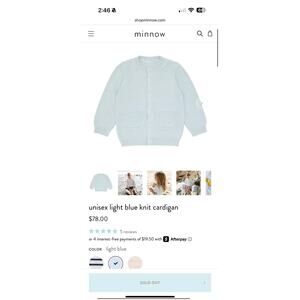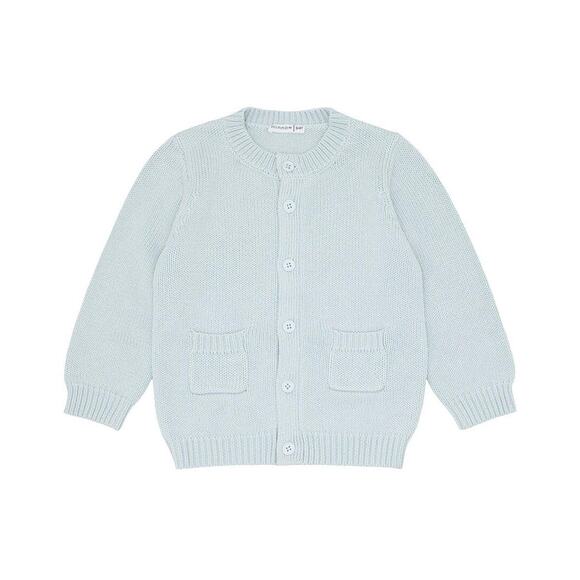 best-selling knit pullover just became a classic button-front cardigan. in a darling light blue knit, this cozy seaside staple is ultra-soft and perfect for layering. the sweet patch pockets, relaxed fit, and ribbed hem make it effortlessly versatile. pair with any of your minnow favorites, or our knit pants, for a look that can go everywhere.