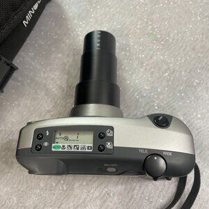 Minolta Freedom Zoom 140EX Point & Shoot 35mm Film Camera w/ Strap + Case Tested.This Minolta freedom 140 EX zoom lens 38 to 140 mm is in light new condition tested and working comes with case really nice from camera. There is a black spec in the viewfinder on bottom left side. See the photo. It’s really hard to see.
