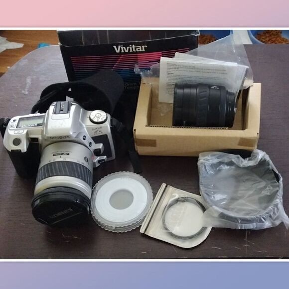 Minolta Maxxum HTsi Plus 35mm SLR Film Camera w/ 28-80mm Minolta Lens & Vivitar 28-210mm f/3.5-5.6 auto focus zoom lens