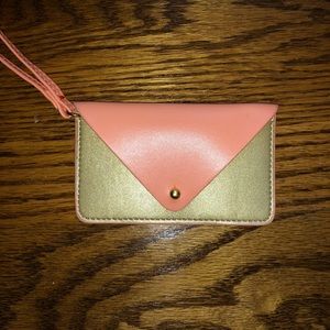 Brand new! Can fit a few cards and maybe some cash. Coral and gold color. Retailed for $20, no longer available on website.