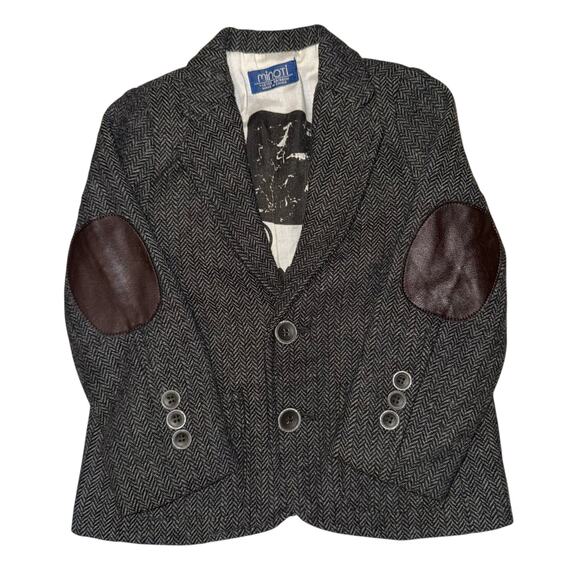 Minoti Wool Blend Blazer Toddler Size 12-18 Mon Elbow Patches Herringbone Fall