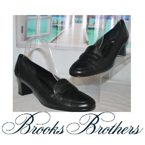 Mint $298 Brooks Brothers Black Leather Heeled Penny Loafers