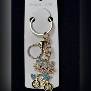 Mint BAG CHARM Sparkly Cat on Bicycle Keychain/Purse Charm Blue