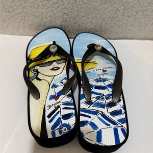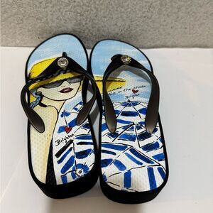 Mint BRIGHTON Chic In The "Shade" Beach Rhinestone Wedge Flip Flop Thong Rubber