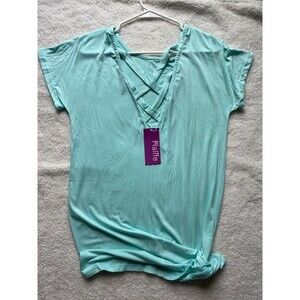 Mint Blue Dress With Pockets Criss Cross Short Sleeve Beach Tunic T Shirt Dress