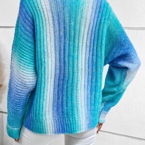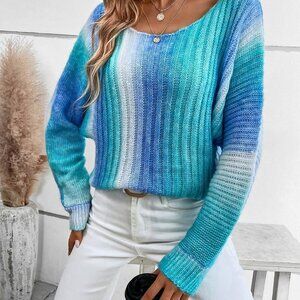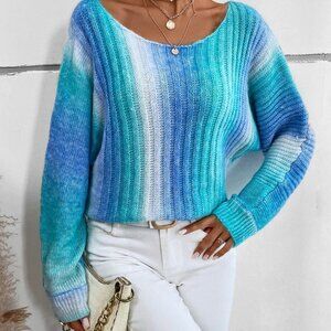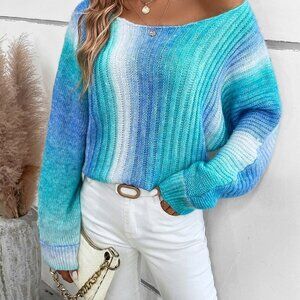 Mint Blue Preppy Womens Ombre Batwing Sleeve Sweater