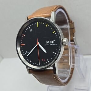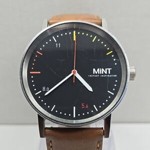 Mint Camera Instanteer Quartz Watch Black Dial Brown Leather Band New Battery