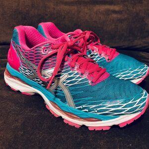 Mint Condition ASICS GEL NIMBUS 18 Womens US Pink Turquoise 8.5 US Medium 40 EUR