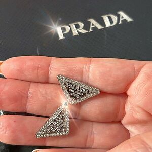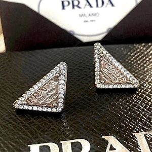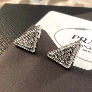 Absolutely stunning mint condition/(look brand new) Prada triangle logo stud earrings. While these are preowned they have been professionally polished and sterilized.
