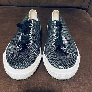 Mint Condition SUPERGA Low Black Snake pattern gumsole bottoms Womens 10 Mns 8.5