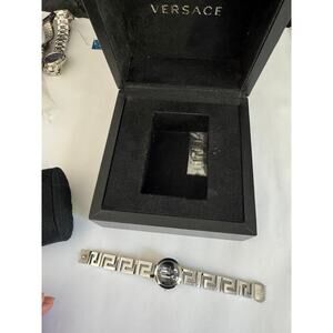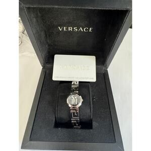 Mint Condition Silver Versace Meandros Watch. Comes with box, extra links, and authenticity card.