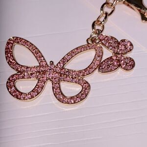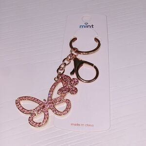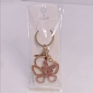 Add a touch of elegance to your accessories with this Mint butterfly keychain. Featuring a stunning gold and pink design, it's perfect for any occasion.