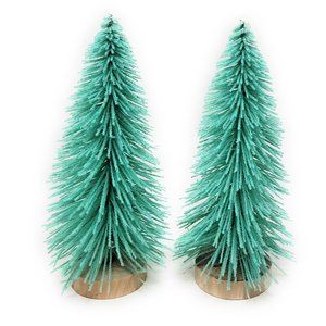 Christmas holiday bottle brush trees in mint green with very light flocking are a fun addition to Christmas party decor (set of 2) The trees measure 9" tall and 4.25" in diameter at the base of the tree and are soft to the touch The bottle brush trees are decorated with a very small amount of flocking Bottle brush trees are great decor pieces for your holiday parties and can be added to your fireplace mantle, holiday scenes, craft projects and more These stunning trees are lightweight and versatile