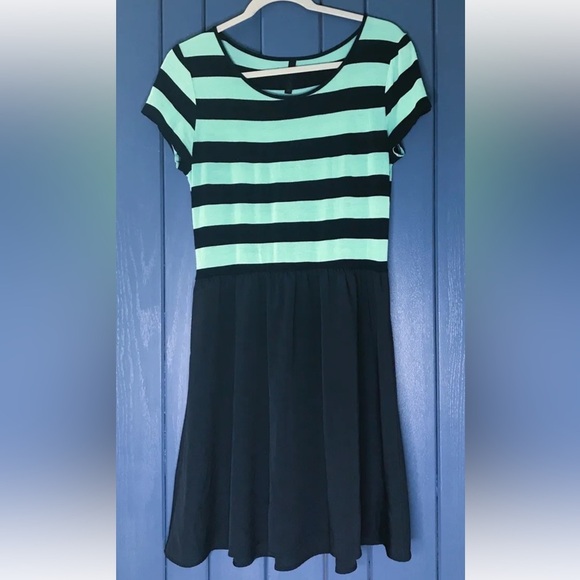 Mint Green Black Striped Dress Juniors Medium Retro Twee Whimsigoth Classic