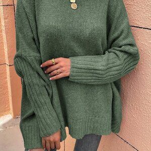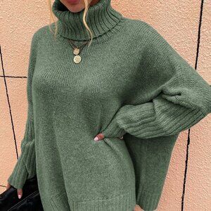 Mint Green Casual womens High Neck Batwing Sleeve Sweater