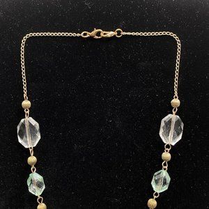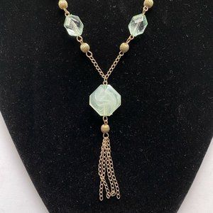 Mint Green & Clear Faceted Lucite Brass Tone Chain Tassel Pendant Necklace 21”