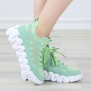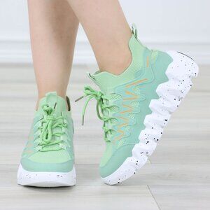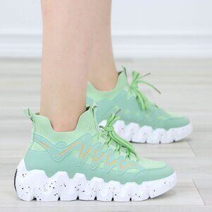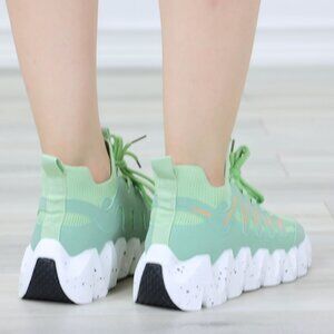 Mint Green Fashion Chunky Heel Sock Sneakers Shoes Slip Ons