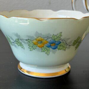Mint Green Floral Sugar & Creamer Set // Delphine China England // Floral Design