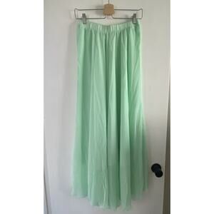 Mint Green Flowy Maxi Skirt Size Medium Elastic Waist NWOT Chiffon High Waisted