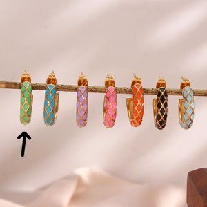 Mint Green Geometric Pattern Hoop Earrings 18K Gold Plated Stainless