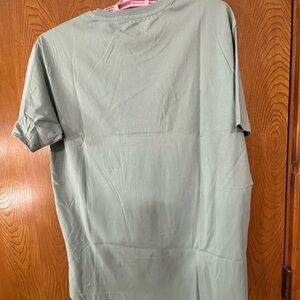 This mint green short sleeve tee features a playful graphic design, perfect for casual outings. Enjoy comfort and style with this versatile top.