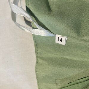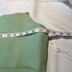 Mint green Long dress size 14, spaghetti straps, zipper in back, pit to pit 16", waist 15", shoulder to hem 51, slit 26", fully lined, belt in front need to be tacked, no rips tears stains