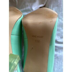 Mint Green Patent Leather Pumps With Clear Flared Heels Size 11