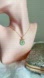 Elegant green pendant necklace with a gold chain. Features a delicate design with sparkling accents.